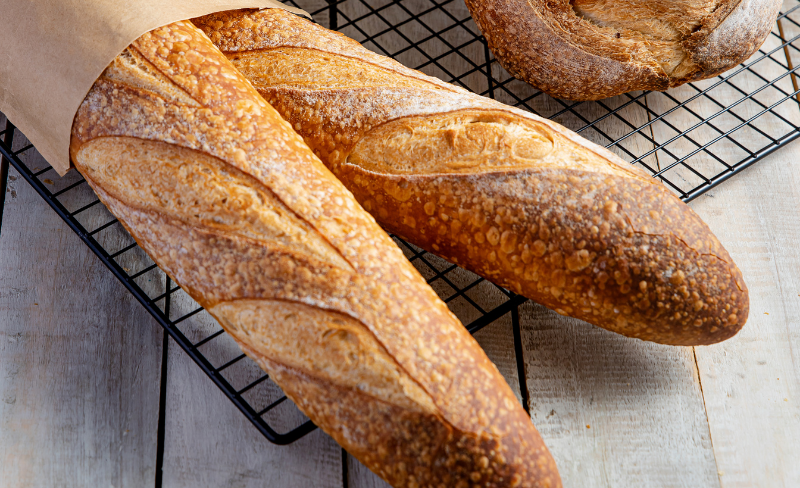 Our sourdough is made by the fermentation of dough using wild lactobacillaceae and yeast.